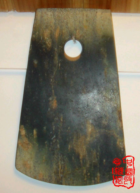 尺 寸 高18.9厘米,顶端宽9.5厘米,刃部宽12.7厘米,0.4厘米