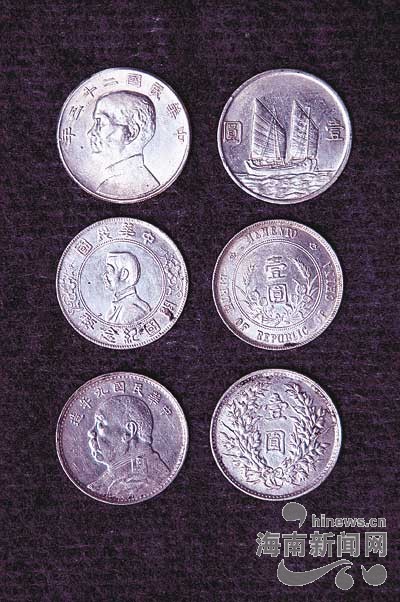 解放前夕“海南银行”自造的光洋。小头像为孙中山(上、中)。头像最大的为“袁大头”(下),含银量最高。