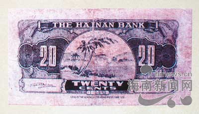 1949年,国民党退据海南,筹建“海南银行”,1950年在大陆发行的最后一套钱币中,2角钱币的背面主景图案为海南海边椰林图案。