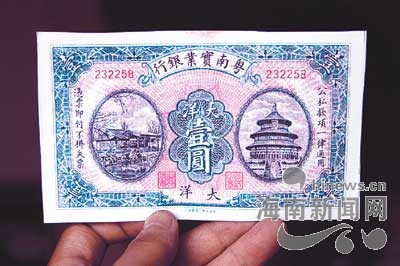 海南最早的地方银行———“粤南实业银行”发行的纸币