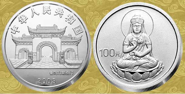 中国人民银行定于2003年10月23日发行2003版观音贵金属纪念币一套。该套纪念币共3枚,其中金币1枚,铂币1枚,银币1枚,均为中华人民共和国法定货币。