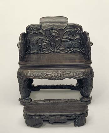 紫檀雕荷花纹宝座,通高109cm,宽98cm,纵78cm。