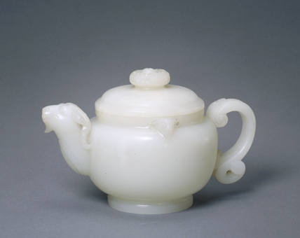 白玉三羊执壶,清,通高10.2cm,口径8.2cm,足径6.5cm。