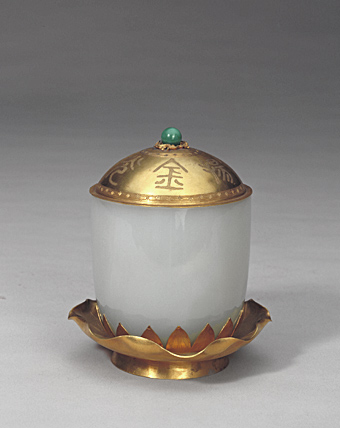 金盖白玉杯,清,通高12cm,口径8.3cm。