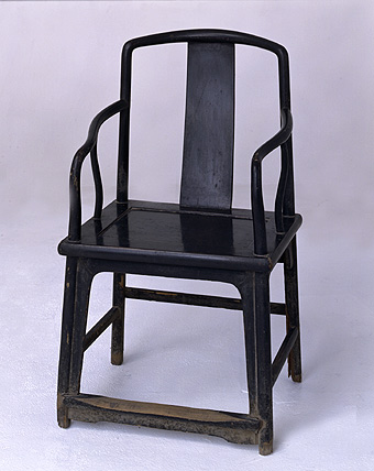 黑漆扶手椅,高98cm,长58cm,宽50cm。
