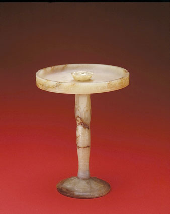 玉勾云纹灯,战国,高12.8cm,盘径10.2cm,足径5.9cm。