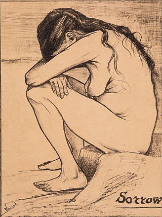 悲叹之老人 38 cm x 55.8 cm 海牙: 1882年11月27日