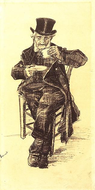 戴帽子的孤独人喝着咖啡 海牙: 1882年11月15日
