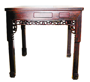 读者:我这张带抽屉的八仙台是不是黄花梨的,价值高不高?