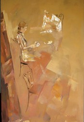 | 油画家新画风的表现与成熟,往往与时代的风尚相关联,特别是那些职业油画家,在宽松的氛围中创作,画风的抒情味存在于自由的表现之中。石滢的画便是将景致营造在非常别致的风格中,使色彩别有一番韵味,这样的作品在视觉上会随着人的想象美幻起来,用美术理论家的话说是生命的情采无限地扩大。 以前的油画局限在一种形式上“挖深井”,固然有其深刻的一面,但常缺乏艺术色彩的张力,使油画色彩本身具有的思想太依赖于场景。石滢将深刻与表现、抒情与时尚联系在一起,使自己的画风有了新时代的标志。 古代蜀川之艺的丰茂深厚,石滢的家籍四川,家中好些人是搞话剧的,艺术根基与氛围得天独厚,这令其从事油画创作的起点与感悟都胜人一筹。 如同现代音乐,大凡有创作和表现力的艺术家,总爱把自身的感受放在首位。石滢观摩前辈们颇具贵族味的经典之作,经过自己在色彩上的新组合,使画面呈现出全新的风貌,“城市本是一座非常动情的现代画面,它把人的生命提升到色彩的层面”。石滢把当代都市的绘画视为现代艺术创新的启蒙,认为过分玩艺术会失却思想的厚度,过于刻画会失却艺术的天真,当代艺术就是要让天真与思索一致起来。 如今,上海好多年轻的画家对创作表现出前所未有的投入,这完全是开放的环境所营造的。他们把光与影视为生命的元素,把前辈画家从写生中获得的线条美、形态美赋于现代艺术的新生,前辈们从自然美中获得的静穆宏大在这些年轻油画家的笔下也得到了继承。 石滢在画中创作出的形象已经描绘到了纤微的人体光影变幻,色彩也是细微到薄纱般的朦胧,情感内涵铺陈在丰茂厚重的场景之中,通过这些新颖别致的画面,传达出自己独特的审美观和思想内涵,进而碰触和感动读画者的心灵。