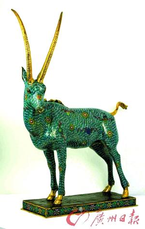 清代铜胎掐丝珐琅宝丝花纹公羊