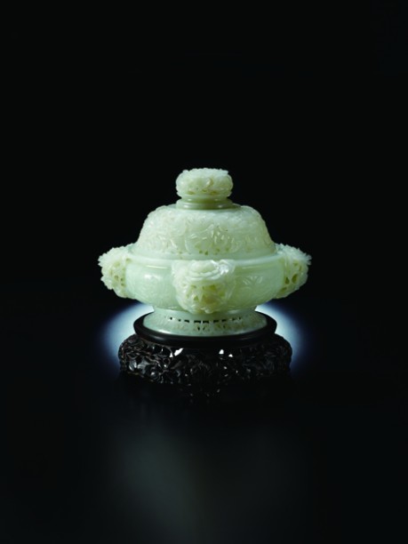 白玉雕牡丹四花钮盖炉连座 成交价以264.5万元