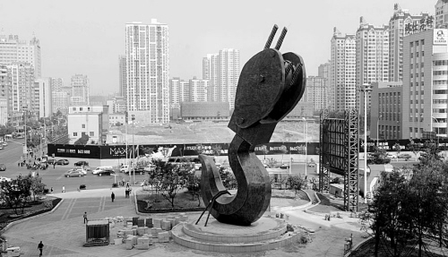 “力量”为什么选用吊钩造型?伊华丰解释说,吊钩是工业生产中不可或缺的工具,而且线条粗犷,代表着力量的凝聚,它的整体造型还有一种向上的、提升的感觉,传递着老铁西繁荣的工业文明,预示着新铁西繁荣的未来。