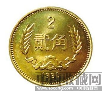 据钱币专家介绍,从1980年开始,中国人民银行发行了第三套人民币的硬辅币,其中的贰角硬币是迄今为止我国发行的唯一一种贰角面值的硬币。该硬币的材质为铜锌合金,与现在流通的伍角硬币颜色差不多,正面有“贰角”字样和麦穗齿轮图案,其中的“贰”字和今天的写法不同,“贰”字的两横是放在“弋”字的左上方。