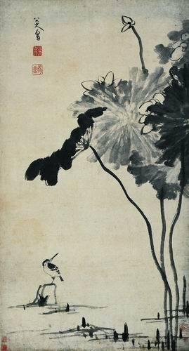 至於荷花成為繪畫的題材,據唐朝張彥遠《歷代名畫記》載,南朝梁元帝(553-555)畫有《芙蓉醮鼎圖》,這也許是我國最初的畫荷之作。唐代隨著佛教造像的興盛,荷花成為繪畫中最為常見的表現對象。五代、北宋時期的著名花鳥畫家黃筌、徐熙、趙昌、滕昌裕等都有不少荷畫作品,可惜早已湮沒無聞。現藏於北京故宮博物院宋代吳炳的《出水芙蓉圖》,當是最早畫荷之作,它繼承了北宋畫院工整寫實的傳統。明代隨著文人寫意花卉的興盛,畫荷之法出現了革命性的變化,這一關鍵性的人物,便是明末的八大山人。