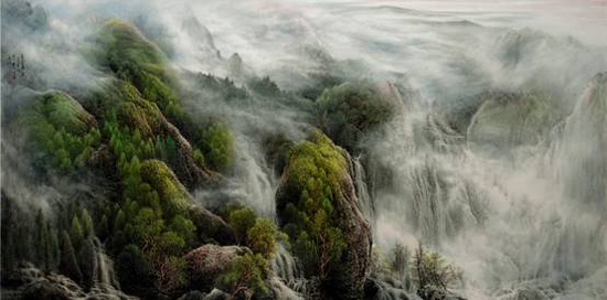 冯一鸣68.5x137cm 遙望飞泉落云山