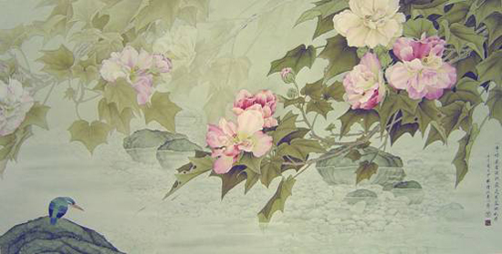 周中耀 68.5x132cm湖畔春色