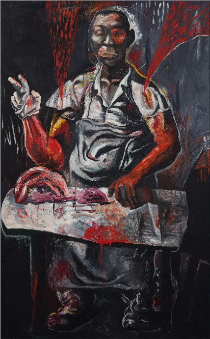 张恩利的《二斤牛肉》,是90年代艺术创作中一件极其重要的作品。它浓缩了中国九十年代众多情绪中最具力量与愤怒的精神。赵半狄创作于1990年的《H·金》则以超大的尺寸,实现作者逃离现实的努力,也是迄今为止市场中出现过,赵半狄人物数量最多,尺幅最大,也是作者心理动机最复杂的作品。刘小东的《后半夜抽烟的小红》则继续其对历史匿名者的关注,呈现出对社会现实的睥睨。
