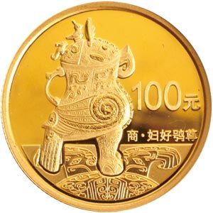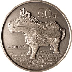 中国青铜器金银纪念币(第2组),以深沉、庄重的币面布局设计和丰满、繁复的远古纹饰,把中国青铜器威严、富丽、神秘而充满想象空间的气质特点作了一一展现,观之,令人神往、陶醉。该套金银币共5枚,其中金币2枚,银币3枚,均为中华人民共和国法定货币。其正面图案均为中华人民共和国国徽,并刊国名、年号;背面图案分别选取了商代司母辛方鼎、妇好鸮尊、妇好偶方彝、司母辛觥和妇好方斝等五种商代晚期最具代表性的青铜器,币面上的每件青铜器均衬以该器物自身的纹样作为背景装饰,如此的匠心独运使五件经典青铜器的独特气质都达到了几近完美的表现。从这组金银币上,我感觉到了一股穿梭于历史和现实之间的浑厚力量。我想,这也许是设计师在运用现代思维对青铜文化进行解读,也许更是为了追寻那股浑厚力量的根源吧。