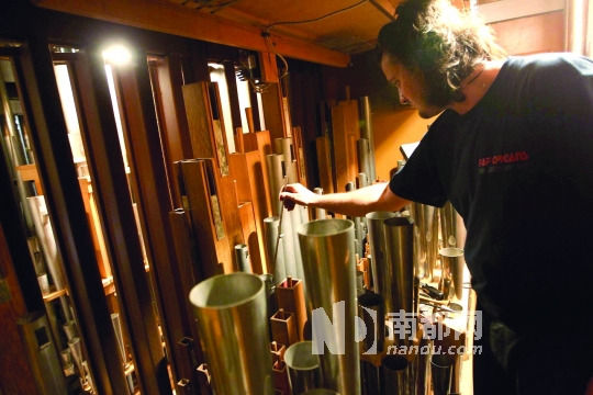 这台管风琴每两年就要做一次全面维护,从出产地捷克的厂家那里请来专家,用两个月时间对这座琴进行调试和维护。最近恰逢它的维护期。