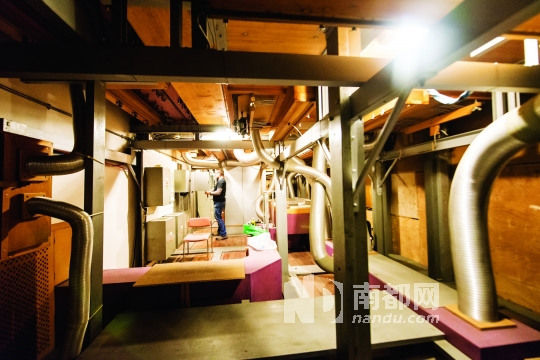 管风琴内部第一层主要是设备,譬如为琴提供发声动力的风箱。张建行说,管风琴看上去跟钢琴有点相似,但其实发声的原理完全不同,“管风琴其实是吹奏乐器,它只是通过键盘来控制气流,一开始是靠人力来鼓风。到二十世纪中的时候,普遍使用电动的鼓风机,就是马达。”
