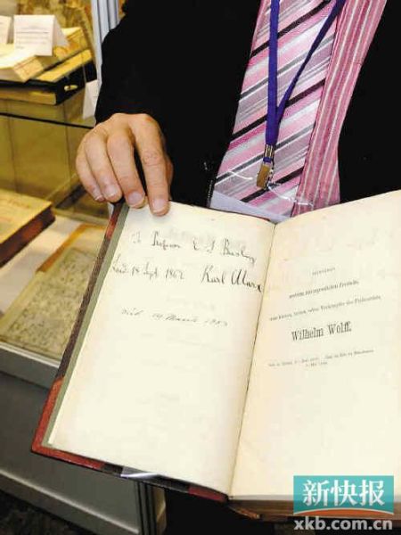 2010年12月3日,澳大利亚史达书店的保罗·飞恩先生正在展示1867年首版马克思著作《资本论》(第一卷),并有马克思的亲笔签字,该版仅印刷1000本,非常罕见,估价约425万港元。新华社发