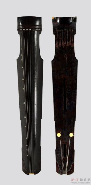 此幸免之古琴为仲尼式,造型端庄浑厚,通体髹黑漆,面桐底梓,岳山、承露、焦尾等部位使用硬质红木,琴体内镶嵌有天柱与地柱以利传音。据琴的形制看是典型的明代器物,从漆面可见琴的底灰中加入绿松石、蚌粉、鹿角灰、朱砂等物,即八宝灰。漆面呈现牛毛断、细流水断等断纹。采以温润白玉为十三徽,更以珍贵之材做雁足、龙龈、琴轸。抚弦听音,琴音松透清亮,颇具金石之韵。原配民国老作琴盒。中国古琴研究会常务理事蒋萃林先生观后亦认为,此明琴琴体之长异于普通之仲尼琴,用料做工均颇为讲究,疑为孔庙祭祀所用。