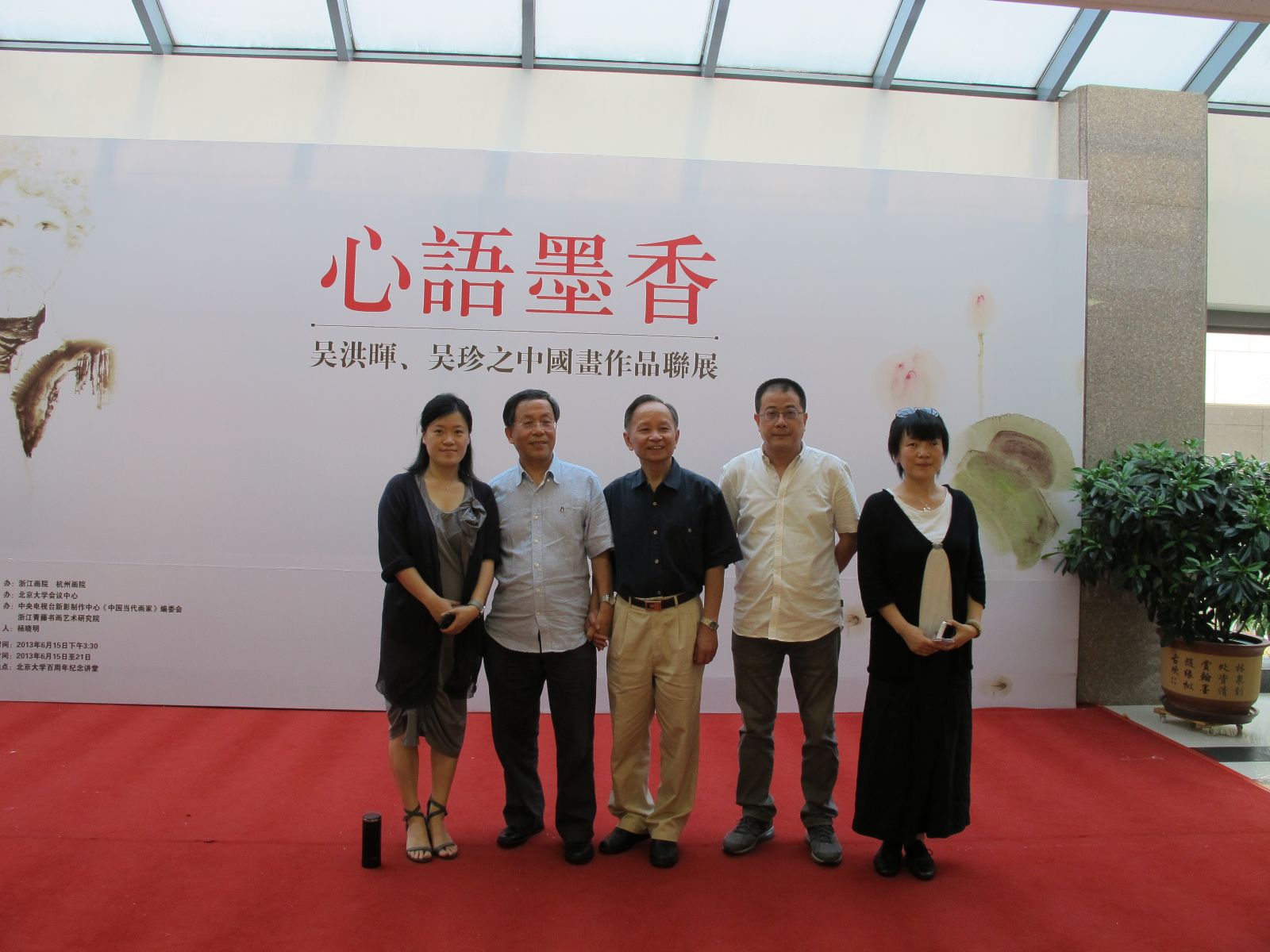 2013 年6月15日下午15:30,“心语墨香”吴洪晖、吴珍之中国画作品联展在北京大学百周年纪念讲堂举行了开幕仪式。出席开幕式并发言的有以下嘉宾:原中国驻新加坡、泰国大使,中国国际问题研究基金会副会长张九桓先生,原杭州画院副院长、国家一级美术师、著名人物画家励国仪女士,著名艺术评论家、美术史论博士、原中国驻新加坡大使馆文化参赞朱琦先生,中共中央直属机关青联委员、文化部青联美术工作委员会委员、水墨画家杜松儒先生,中国国家博物馆著名画家熊广琴女士等。同时,两位画家的父亲中国美术学院教授、著名中国画画家吴永良先生也来到现场为女儿祝贺。令人振奋的是,中央美术学院院长潘公凯先生也发来贺信,预祝画展圆满成功!祝二位青年才俊画艺精进,创建美丽人生!