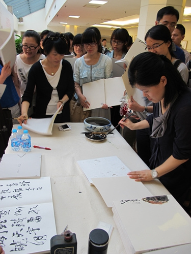 吴洪晖、吴珍之姐妹在为参加画展的观众签名