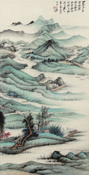 大千在青绿艺术上的创新,却是大家一致公认的。研读中国山水画史,我们知道中国山水画彻底从人物画中独立成科,是从青绿开始的。可以说,青绿艺术的完善,最终完善了中国山水画的艺术主体性,同时创造了山水画艺术的第一次高峰。从展子虔经李思训、李昭道到王希孟、赵伯驹,前后绵延500余年,形成了中国山水画的极盛时期。应该说,青绿山水和浅绛山水平分秋色,共享了中国古典绘画黄金时代的荣光。与此同时,文人画家逐渐主导了画家队伍,由于文人群体强大的集团力量,从而形成了文人群体特有的审美系统。在这个系统里,"水墨为尚",青绿之美受到排挤而逐渐边缘化。 在宋以后的近千年里,虽然青绿山水没有彻底从中国绘画中消失,但基本上只是被作为一种技法使用。像展、李、王、赵那样专攻青绿而卓然成家的近乎绝迹。青绿之美遂在千年绘画史上若隐若现,仅仅是作为一种技艺被一代又一代地重复和继承,山水画的创新规律几乎与青绿无关。这反过来使青绿绘画更为卑微,更遭很多画家和社会的轻视。大千创作是将这股青绿山水之风重新兴起并发展到新的高度。 在师古人方面,从理论见解到动手实践,张大千有独到之见,他曾说“临摹,观审名作,不论古今,眼观手临,切忌偏爱。人各有所长,都应该采取,但每人笔触天生有不同的地方,故不可专学一人,又不可单就自己的笔路去追求。要凭理智聪慧来采取名作的精神,又要能转变它。”可以说,张大千主张不拘一格,广收博取。