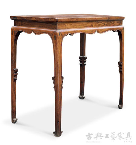 黄花梨高束腰马蹄足挖缺做条桌 明