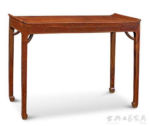 黄花梨四面平带翘头条桌 明