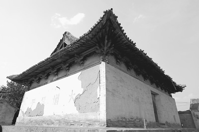 保存还算完整的大殿墙皮大块脱落。