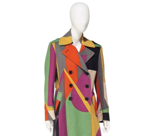 图为苏熙·曼奇斯收躲的 Paul Smith 拼色风衣,估价为 200 英镑到 400 英镑之间。