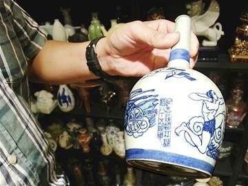 邓跃伟还不忘分享他的“收藏经”:“成都酒瓶收藏起步很晚,现在搞这个收藏的人数也不多,总共就20多个。”他说,酒瓶收藏主要分两类,一种曾装过酒的,叫熟瓶,而没有装过酒的,叫生瓶。“很多藏友喜欢熟瓶,其实生瓶只要做得精美,同样具有收藏价值。”邓跃伟介绍,收藏酒瓶,主要看重三个原则:一是做工精美,二是用料上乘,三是市场存量。“有时候其他藏友和我交流时,都表示自己曾收藏了很多玻璃酒瓶。其实,玻璃酒瓶用料普通,制作工艺也不够好。”除非酒瓶造型非常奇特,否则也不具备太多收藏价值。