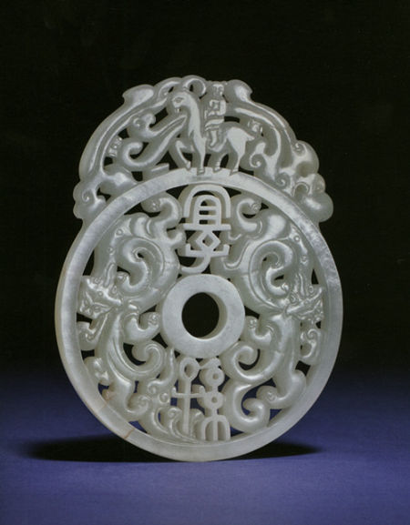 清乾隆 白玉镂雕“宜子孙”出廓璧 高10.2厘米 38.775万美元 2013年纽约佳士得春拍