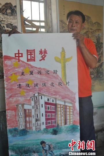 季金章展示六幅画之一的《中国梦》。苗凤强 摄