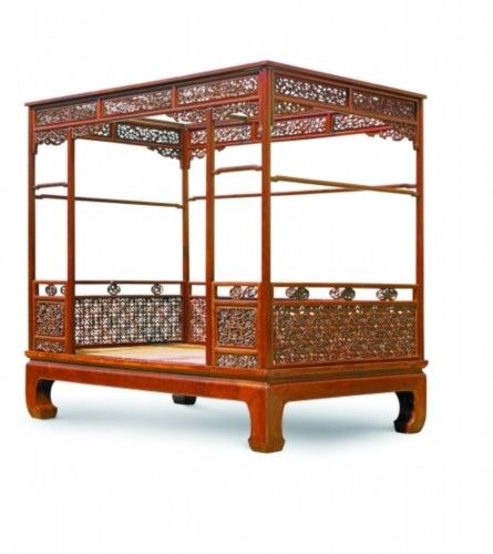 2010年秋拍,“明黄花梨簇云纹马蹄腿六柱式架子床”以4312万元人民币高价成交,创出黄花梨家具拍卖的新纪录。