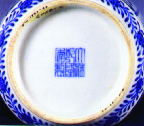 清乾隆青花串枝花卉纹棒槌瓶底款