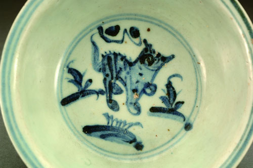 明·青花兽纹碗尺 寸:高6.3厘米,口径14.7厘米,底径5.6厘米鉴赏要点:1996年湖北秭归庙坪35号墓出土,湖北省博物馆收藏。