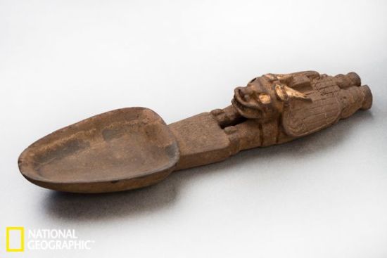 这件保存完好的木雕文物,是从皇陵发掘的文物中最让考古学家感到惊喜的一件。大约1200年前,一位瓦里艺术家在这把木勺的把手上,雕刻了一个长有翅膀的超自然生物形象。