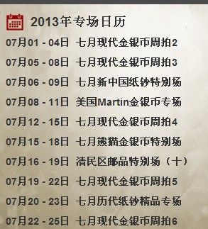 在赵涌在线专场日历中,我们不难发现,赵涌在线在七月共安排了9场金银币专场,其中除了赵涌在线每月正常的现代金银币周拍专场、熊猫金银币特别场和金银币精品专场外,本月中赵涌在线还增设了备受瞩目的美国martin金银币专场,专场时间为7月8日-11日。