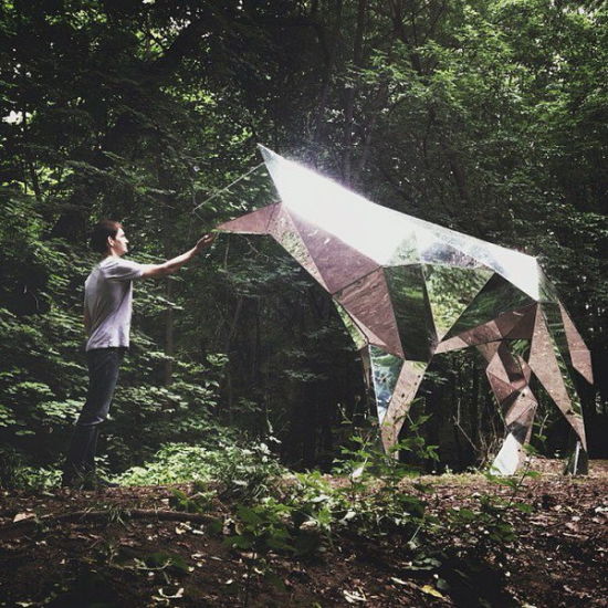 俄罗斯雕塑艺术家 Pavel Platonov 近期在莫斯科公园向公众展示了他的最新艺术作品,一头抛光了的巨型金属狼,切面风格的造型和突出的镜面反射效果可以与周围的环境很好的融合在一起,现场感觉一定会很震撼。