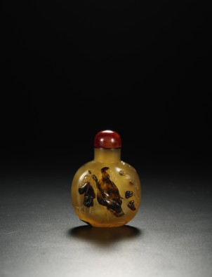 2013西泠春拍 清·影子玛瑙巧雕月下松鹰鼻烟壶