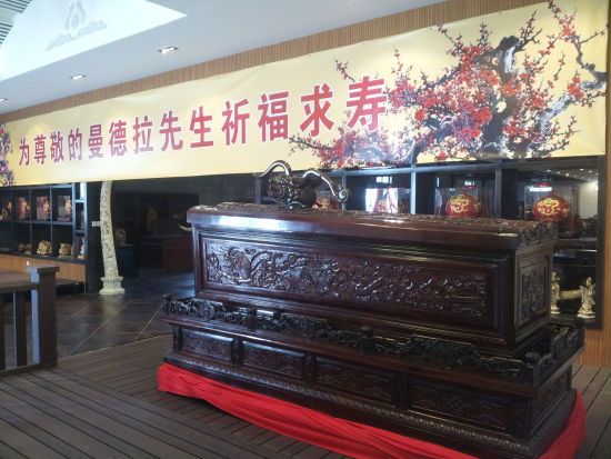 对于捐寿棺的初衷,员增荣神情凝重地说,得知曼德拉先生病危的消息,作为曼德拉的超级粉丝,他非常关注也很焦急,每天都看电视了解老人的病情状况,“遗憾的是,我不是医生,不能为他看病把脉,而且南非和我们中国相隔千山万水,也不可能立即去看望他老人家。于是,我就想起中国古老的民间风俗,就是当老人病危时,儿孙们及时给老人购置棺木,为其冲喜祈福,老人看了棺木后,走的就比较安心,另外,据我了解曼德拉和他母亲都是基督徒,他们的丧礼和中国农村传统一样实施土葬,便决定将我收藏多年的古沉木制作的龙棺无偿捐给曼德拉老人。”1988年,员增荣大学毕业后,从陕西咸阳老家,只身一人到河南濮阳市安家落户,经过多年打拼,如今已是身家数亿,但他为人非常低调,在濮阳当地商业圈很少抛头露面,他也不像别的有钱人那样,有了钱就置办别墅豪车、购买黄金珠宝,除了投资房地产、石油服务业等必要的开支,其余的资金几乎都用在了古沉木的收购、收藏、加工雕琢上,在他的4个古沉木收藏厅,摆满了用古沉木加工的山水、人物、风景工艺品和收藏品,加上院内摆放的古沉木、楠木待用材料,真是价值连城,无法评估,只能用“震撼”二字来形容,而捐赠曼德拉的龙棺,只是其中的一个代表。