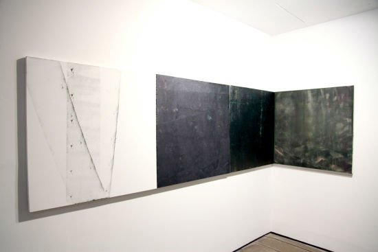 记者在现场看到,本次画展由四组油画组画——“洗心”、“游心”、“在宥”、“代序”,一组瓷板画——“断竹”与一组水墨画——“即体”组成。韩梦云说,画展中文名出自前苏格拉底哲学家阿那克西曼德,意谓世间万物的本原,因其化生一切,包括相反的事物,故其自身必无任何限定与规定,是为“无定”。这不仅是韩梦云对其抽象画之风格的描述,也是她对创作动机的阐释。“这些画作并不是对自然万物的描绘,也非画家寄情于山水之中,而是对超越于其上的、本身即为抽象的道或理念的表现。”她说。