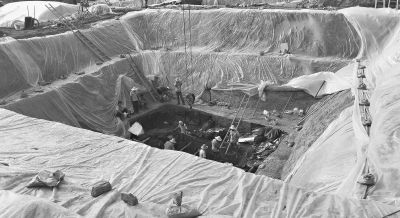 昨日天晴,因下雨暂停的考古现场挖掘工作继续进行,为第二次央视直播做准备记者刘斌 摄