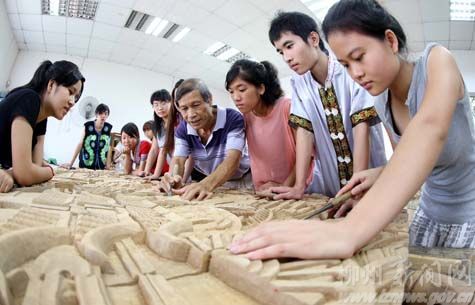 师生集体创作《柳州风情》木雕