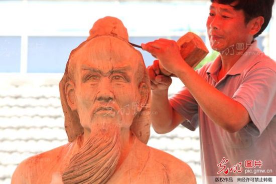 2013年7月6日,当日,安徽省工艺美术行业协会会员、亳州市民间艺人,草根雕刻家贾芳山精心创作的《华佗站芍花》巨型木雕作品顺利完工。贾芳山说,这座3米高的《华佗站芍花》木雕,是他为亳州市一家药业企业进行雕刻的,原料是一颗完整的核桃木。据了解,《华佗站芍花》木雕是贾芳山从事木雕工作近30年来雕刻的最高的雕像,从设计到现在,历时120天。据贾芳山介绍,近年来,随着亳州中药产业的迅猛发展,亳州众多的药业企业更加敬重家乡人神医华佗,来他这里要求雕塑华佗雕像的药业企业也越来越多,一些药业企业都希望通过对华佗的宣传,发扬亳州的中药材文化。
