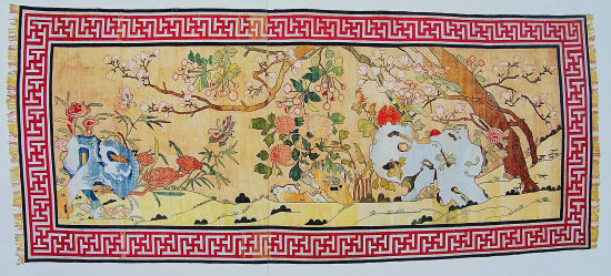 这件壁毯采用中国画润色写实的艺术手法,反映了清代织毯工艺的高超水平和艺术成就,既是贵重的实用品,又是一件具有高度艺术性的装饰品。
